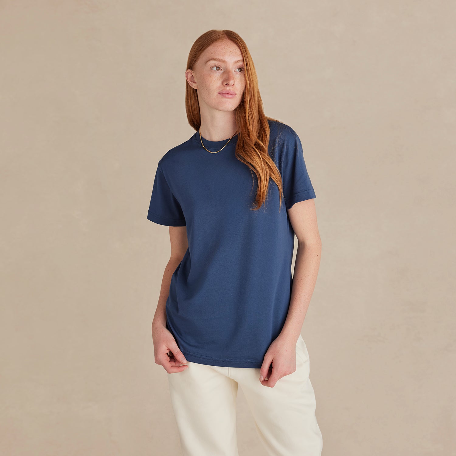Our GOTS Organic Cotton t-shirt in a more tapered and feminine silhouette in our relaxed fit.